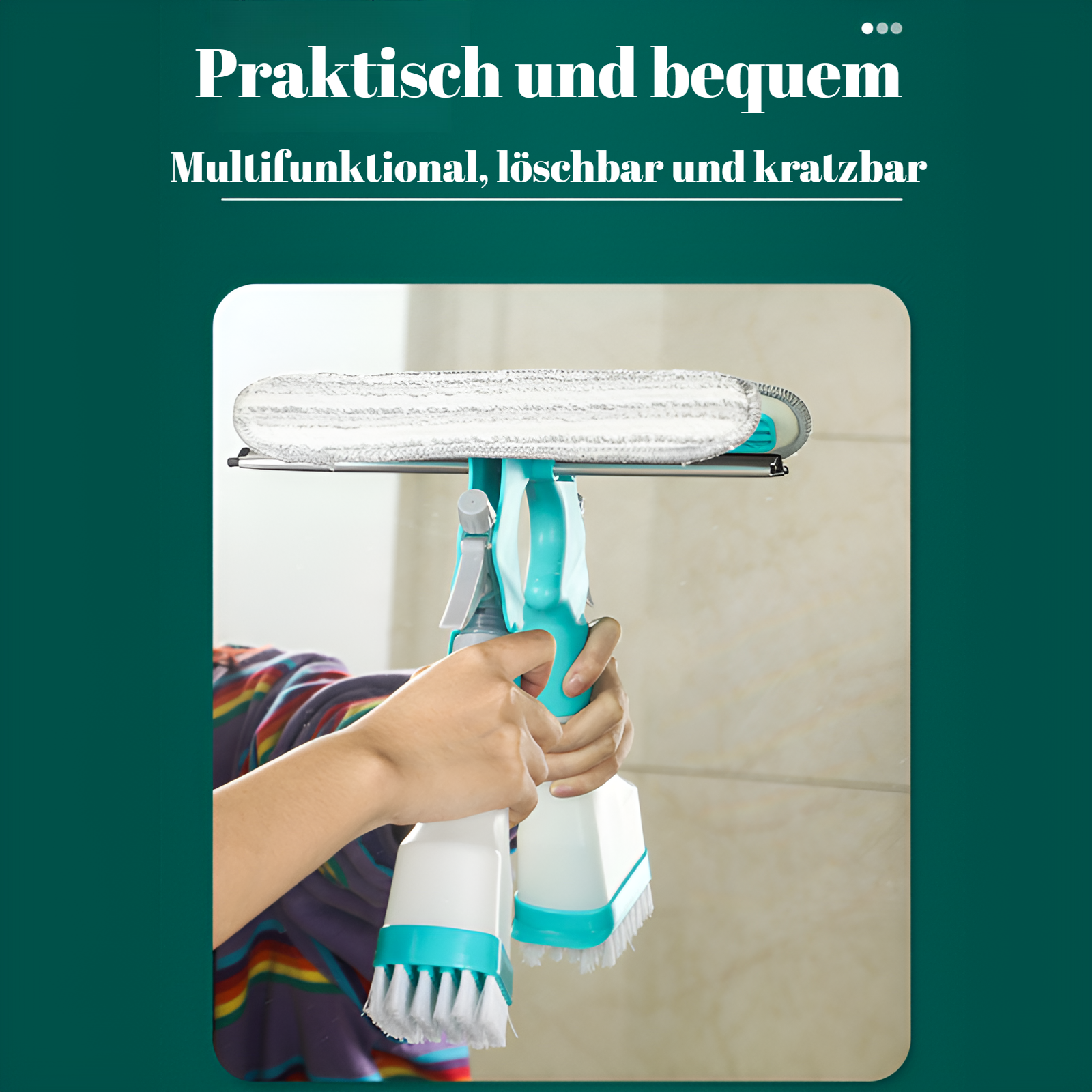 Multifunktionale doppelseitige Reinigungsbürste für den Haushalt mit Schaber, Schwamm, Bodenbürste,
